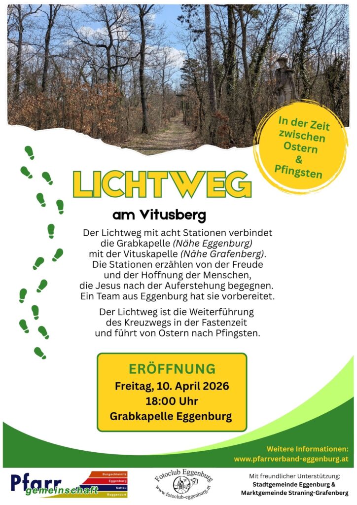 In Zusammenarbeit zwischen der Pfarre und dem Fotoclub Eggenburg wurde ein Lichtweg mit acht Stationen am Vitusberg aufgebaut. Sie führen von der Grabkapelle (Nähe Eggenburg) zur Vituskapelle (Nähe Grafenberg).