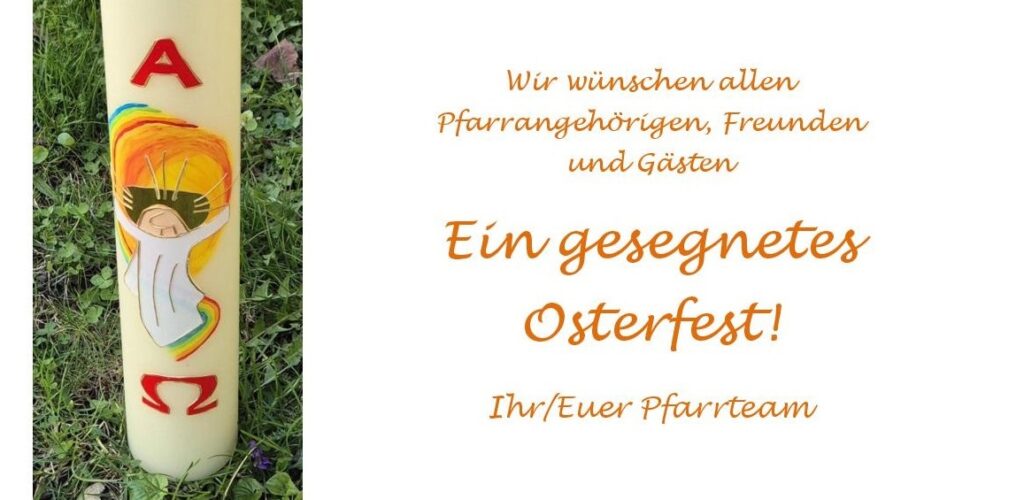 Wir wünschen allen Pfarrangehörigen, Freunden und Gästen ein gesegnetes Osterfest! Ihr/Euer Pfarrteam